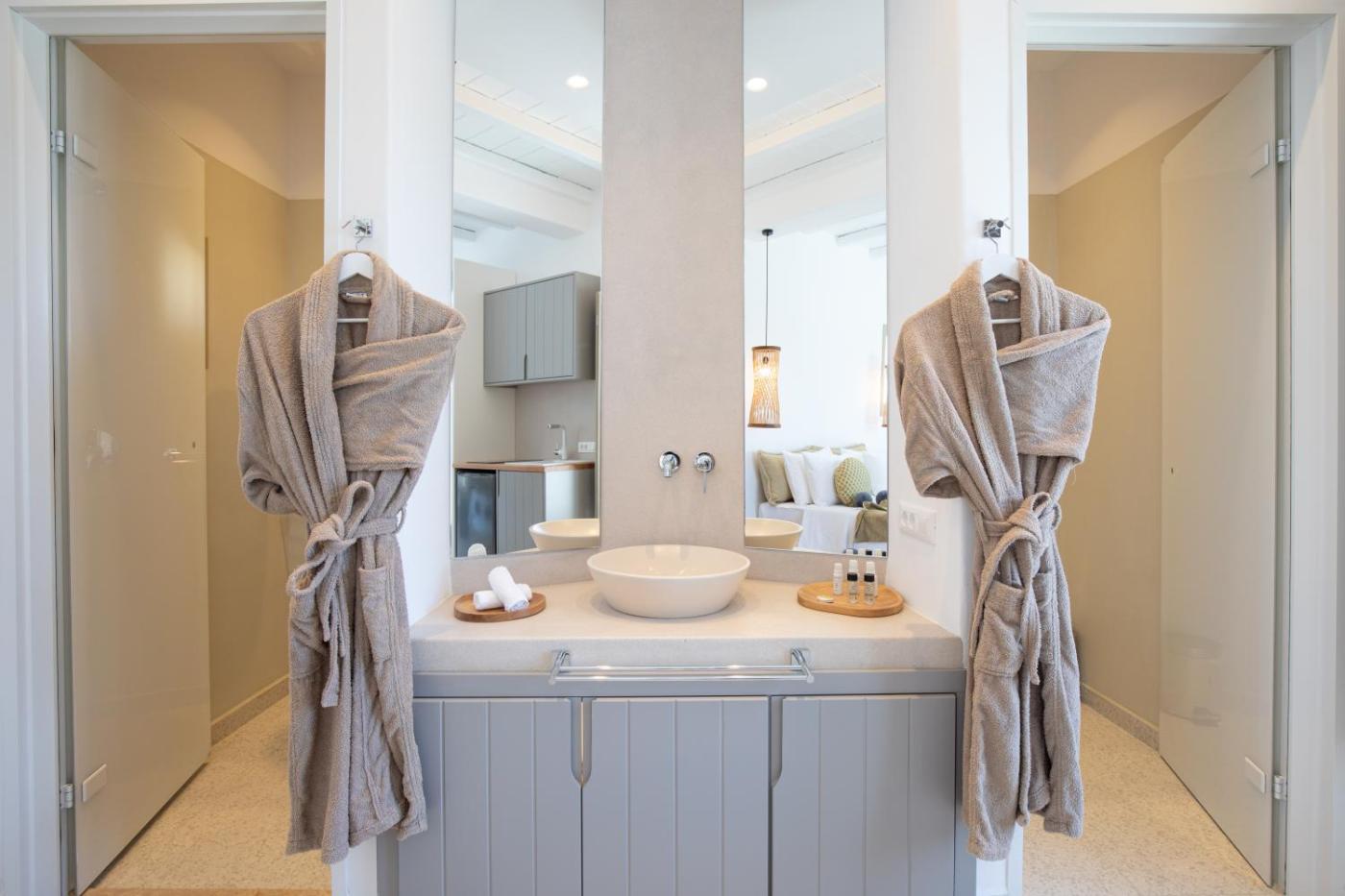 Junior Suite with Sea View. Featuring a private entrance, this air-conditioned suite is comprised of a kitchenette, 1 bedroom and 2 bathrooms with a walk-in shower and a hairdryer. Meals can be prepared in the well-fitted kitchenette, which is fitted with a stovetop, a refrigerator and kitchenware. The suite features tiled floors, a seating area with a flat-screen TV, soundproof walls, a tea and coffee maker as well as sea views. The unit offers 1 bed. ;