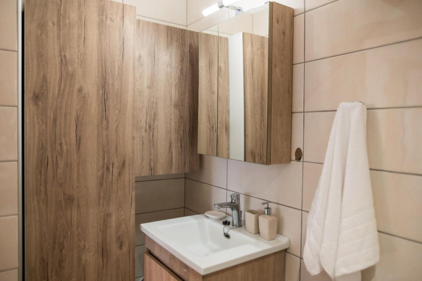 One-Bedroom Apartment. Featuring a private entrance, this air-conditioned apartment comprises 1 living room, 1 separate bedroom and 1 bathroom with a shower and a hairdryer. Guests can make meals in the kitchenette that is equipped with a stovetop, a refrigerator, kitchenware and an oven. The unit features a washing machine, city views, a terrace and winechampagne is provided for guests. The unit offers 2 beds.